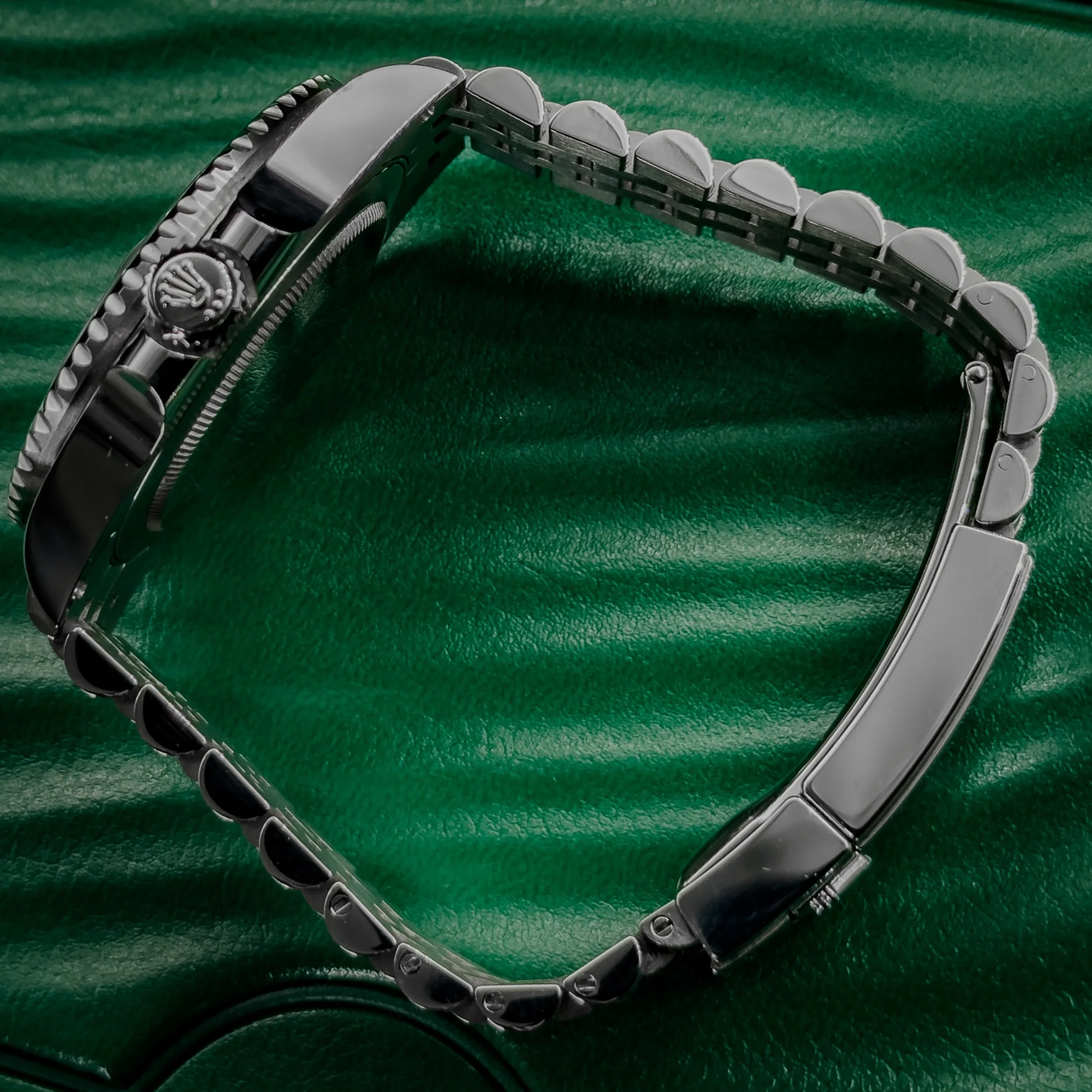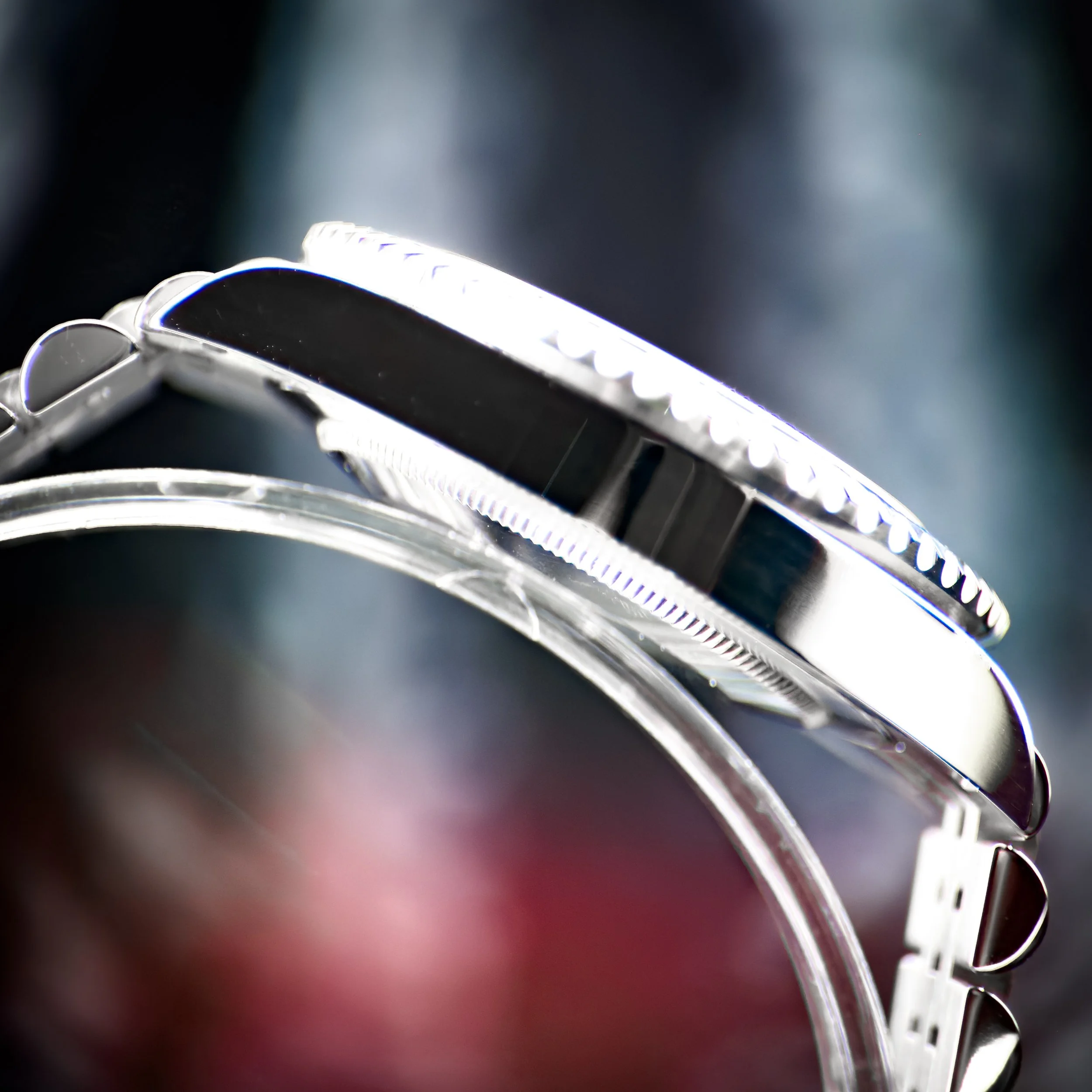 The Batgirl is, by far, one of the most coveted pieces in the Rolex inventory. The unique colored ceramic bezel, Oystersteel case, and jubilee bracelet all combine to make this timepiece a true work of art. It is powered by the Rolex Caliber 3285 which offers unsurpassed precision and boasts a power reserve of approximately 70 hours. The black dial showcases luminous markers and hands for enhanced legibility, while the blue GMT-Master II hand allows for tracking two time zones simultaneously.